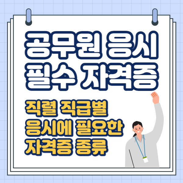 일부 직렬 공무원 시험의 응시자격에는 관련 분야 자격증 소지가 필수입니다. 지금부터 국가직, 지방직 9급, 7급 공무원 시험 응시자격으로 필요한 자격증 종류 및 2024년부터 변경되는 응시자격 내용에 대해서도 알려드리겠습니다.